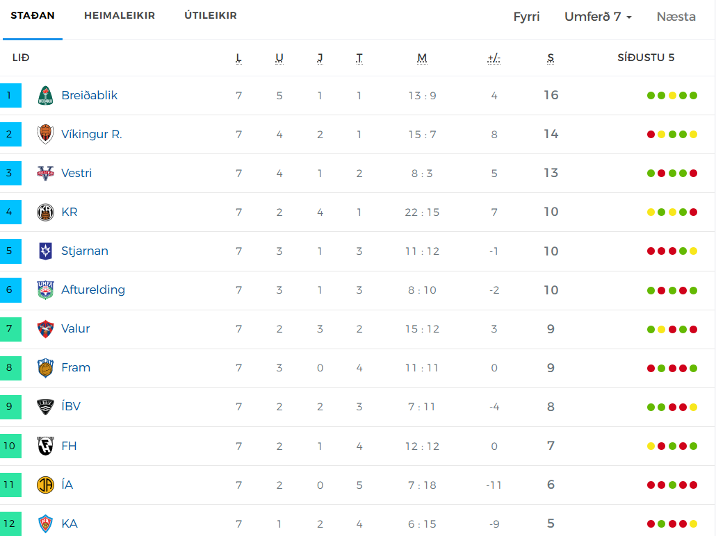 Blikaliðið er á toppnum eftir 7 umfeðir í Bestu deildinni 2025: