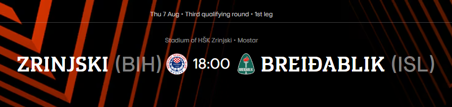 Blikar fara til Sviss eða Hollands ef sigur vinnst í einvíginu gegn Zrinjski en til Moldóvu eða San Marínó ef ekki. Andstæðingur í Sviss er sigurvegari í einvígi Servette frá Sviss og Utrecht frá Hollandi. Ef hinsvegar Blikaliðið tapar einvíginu gegn Zrinjski förum við í umspil um sæti í Sambandsdeild UEFA, gegn tapliðinu úr einvígi Milsami frá Moldóvu og Virtus frá San Marino.