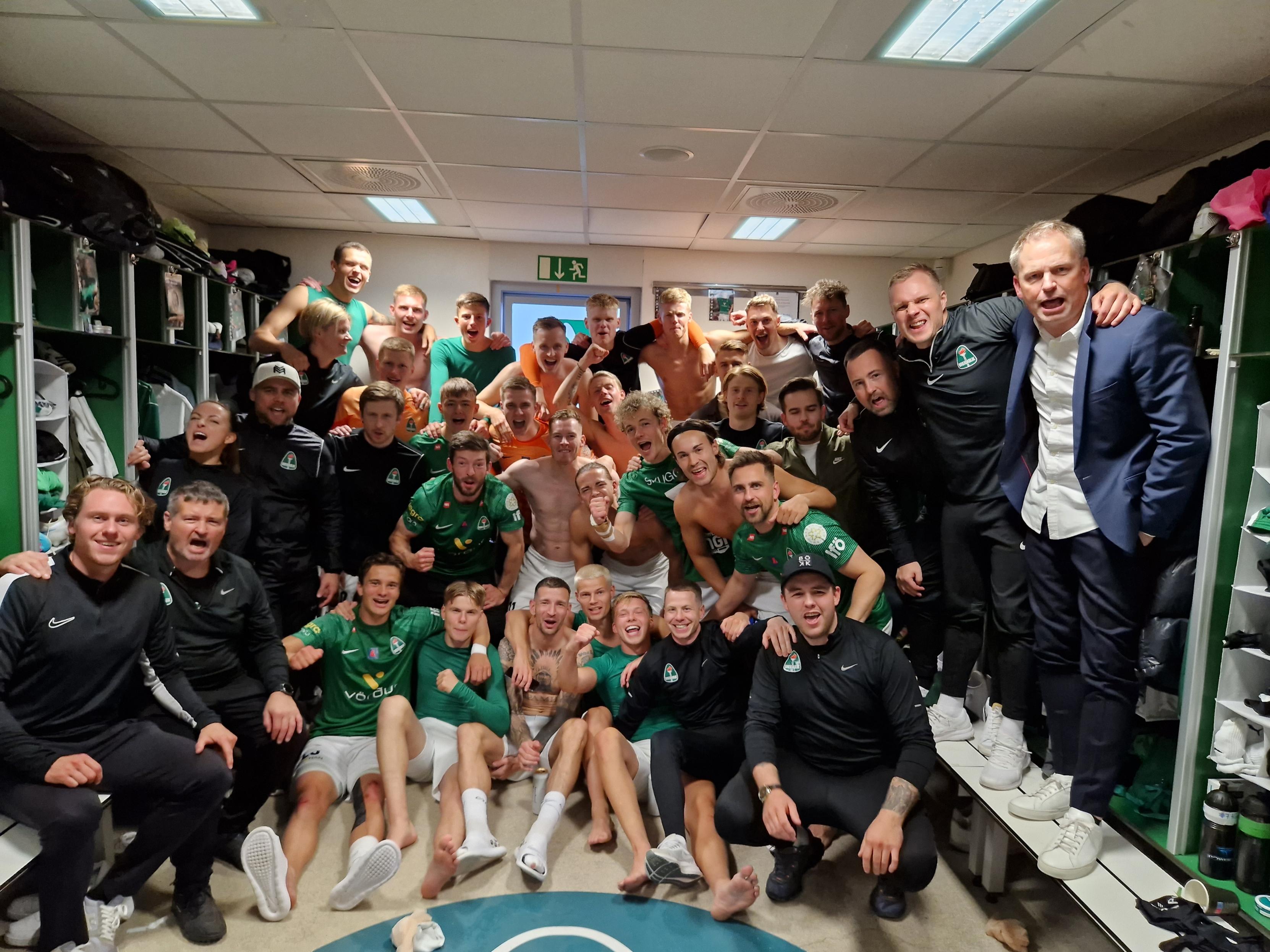 Síðari leikuinn fór fram á Kópavogsvelli og vannst einnig 1:0 og Breiðablik þar með búið að trygga sér sæti í riðlakeppni Sambandsdeildar Evrópu keppnistímabilið 2023/24 sem var vel fagnað í klefanum: