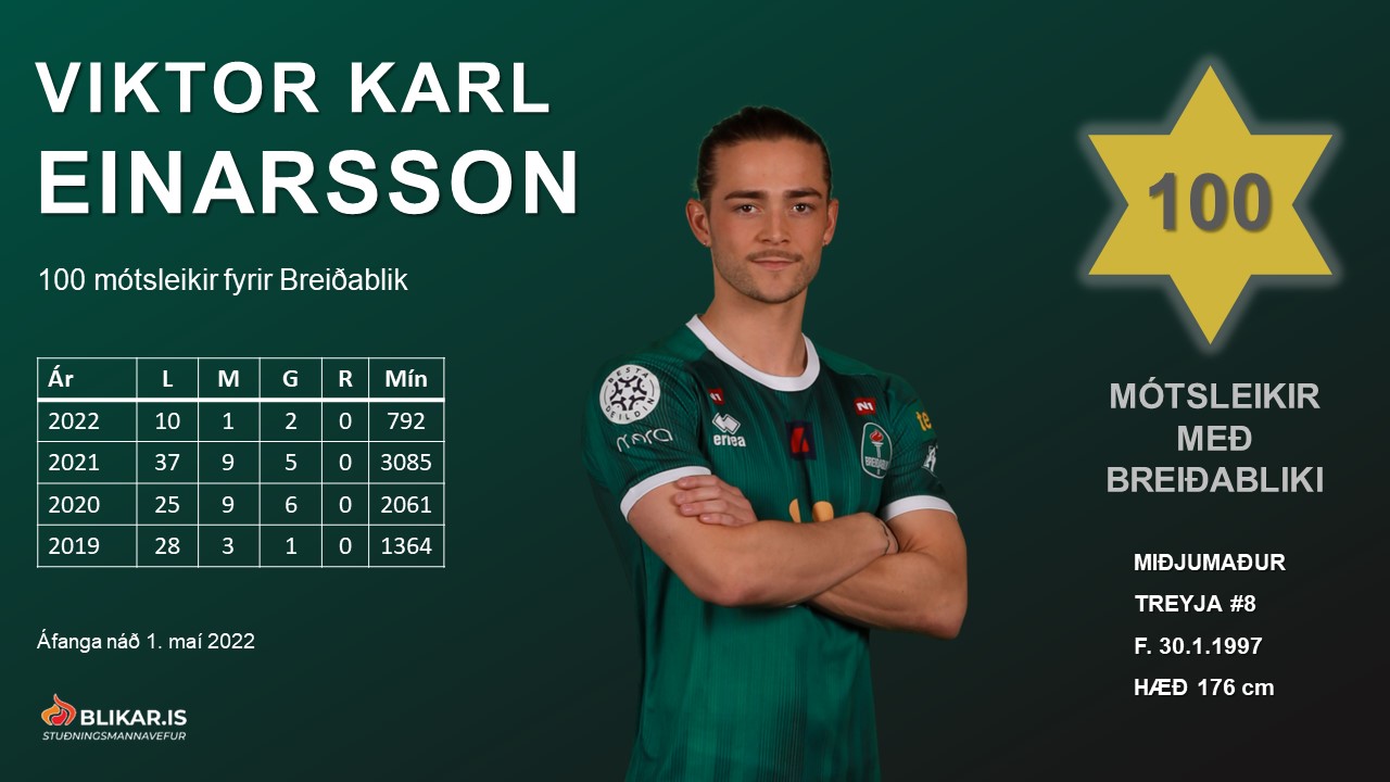 Þetta var 100. mótsleikur Viktors Karls Einarssonar.