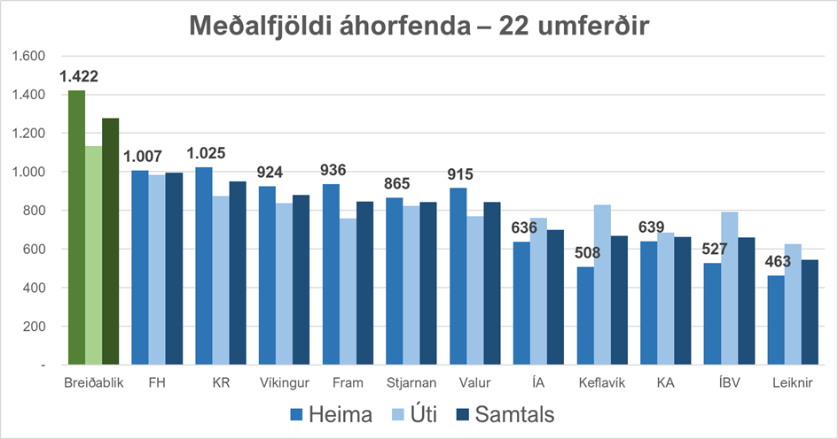 En mikið ferlega hefur verið gaman að mæta fyrr í sumar og það hefur fleirum þótt. Á reglulegri leiktíð – 22 umferðum Bestu deildar karla – var þetta mætingin: