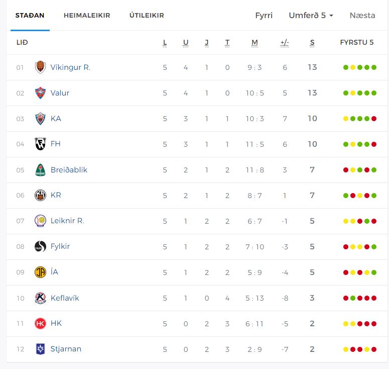 Svona lítur stöðutaflan út eftir 5 umferðir: