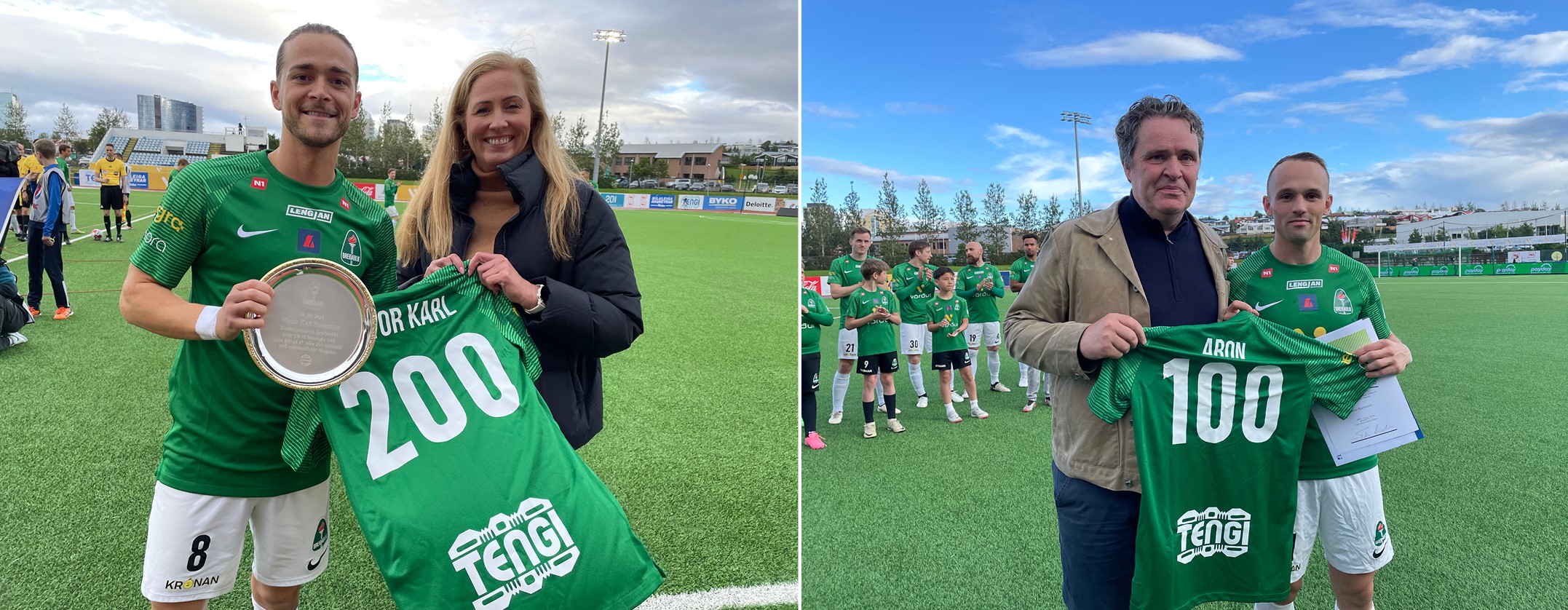 Viktor Karl Einarsson 200 mótsleikir og Aron Bjarnason 100 mótsleikir