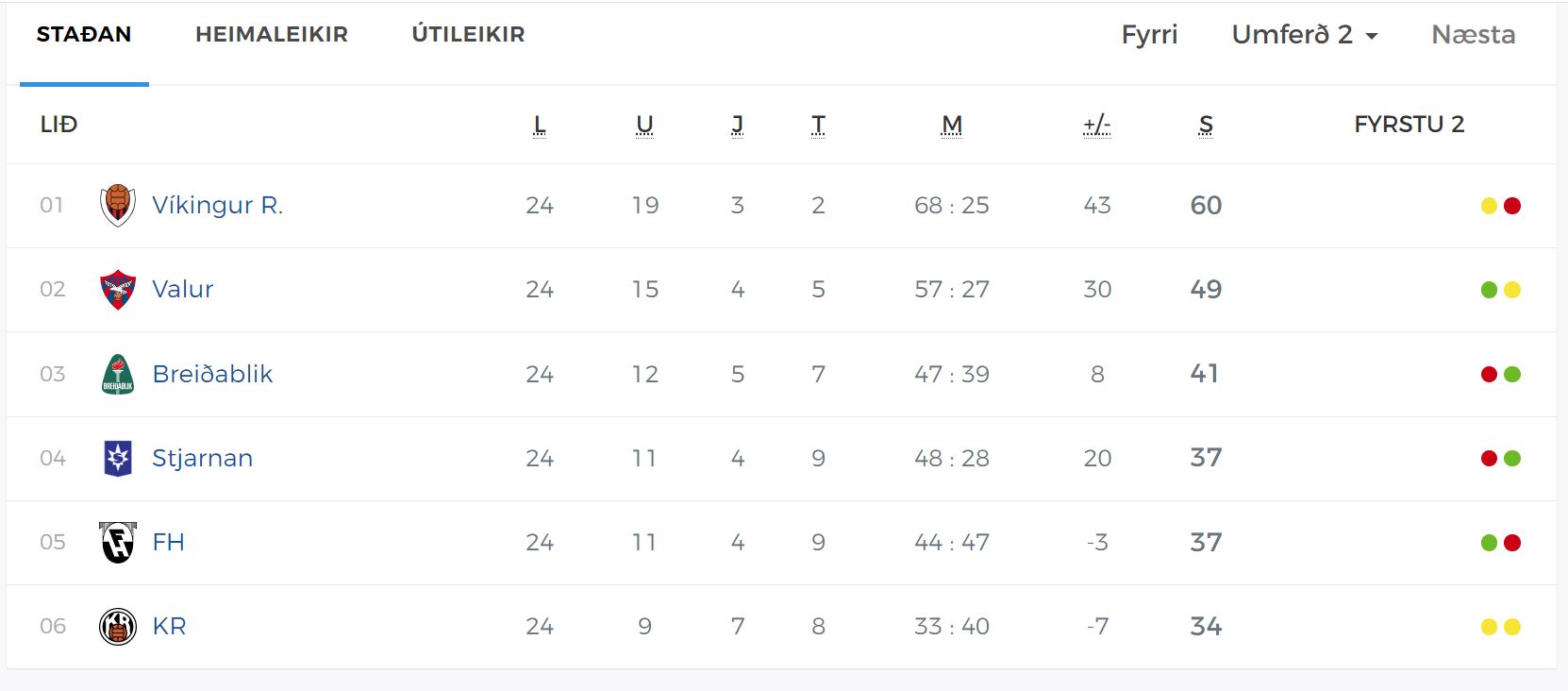 Okkar menn náðu sér í þrjú öflug stig í baráttunni um þriðja sætið með 3:1 sigri á Reykjavíkur Víkingum í síðasta leik. Valsmenn eru nokkuð öryggir með 2. sætið.