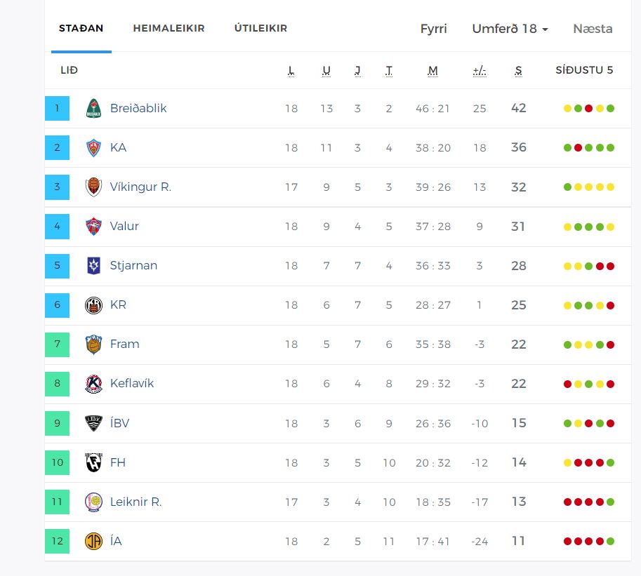 Staðan eftir 18 umferðir – Blikar á toppnum með 6 stiga forskot á næsta lið, KA: