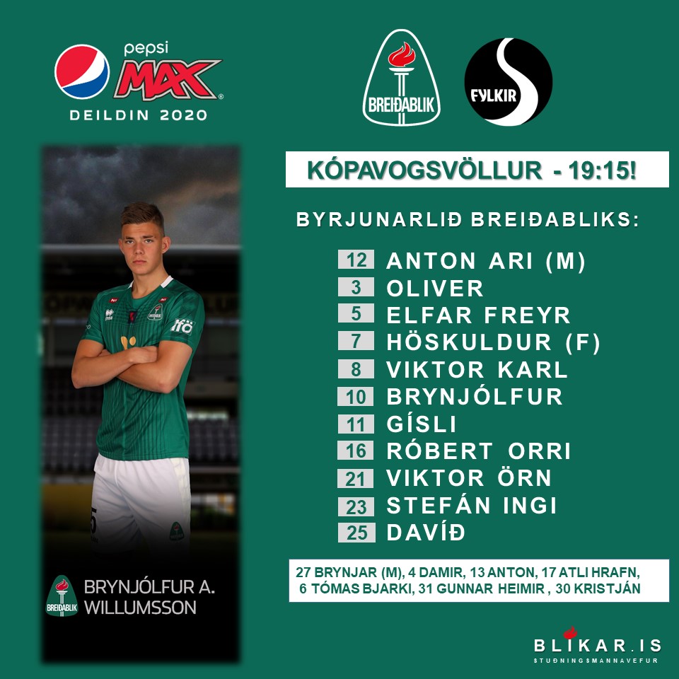 Byrjunarlið Blika í kvöld var svona: