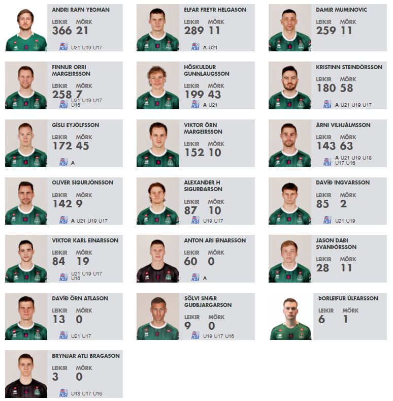 Einnig er framkvæmdastjóri KA, Sævar Pétursson, fyrrverandi leikmaður Blika með 119 mótsleiki og 23 mörk með Blikum.