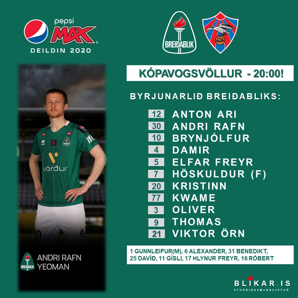 Óskar Hrafn þjálfari gerði 2 breytingar á liði Breiðabliks eftir tapið á móti KR, Viktor Karl var í banni og Davíð Ingvars fór á bekkinn. Inn í byrjunarliðið komu Kristinn Steindórsson og Kwame Quee.
