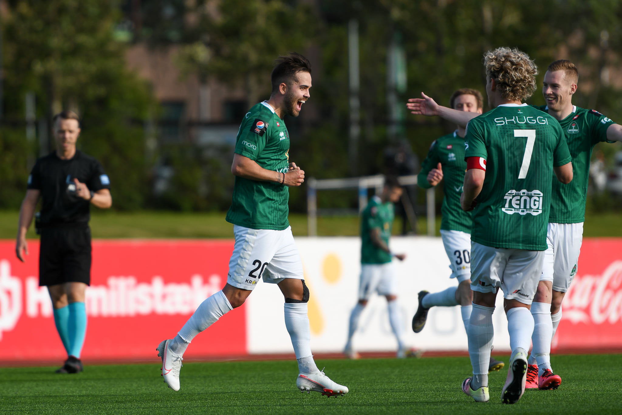 Af gestunum var enn lítið að frétta og satt að segja var undirritaður að velta fyrir sér hvort gestirnir hefðu ekki mætt með neina leikáætlun. Því fer auðvitað víðsfjarri og hana hafa þeir áreiðanlega haft en sennilega hefur hún farið í vaskinn í þann mund sem Blikar gerðu fyrsta markið. Í það minnsta var hún lítt eða ekki sjáanleg. En áfram rann smjörið hjá Blikum og aðeins örfáum mínútum eftir markið hjá Thomas var nú aftur komið að Kristni og markið var sannkallað konfekt. Alexander Helgi launaði nú Kristni stoðsendinguna og galt í sömu mynt. Kristinn tók vel á móti og lagði boltann snarlega fyrir hægri fótinn og skaut nánast í skrefinu og boltinn í stöng og inn. 4-0 takk fyrir og vallarklukkan ekki komin í 40 mínútur. Þvílík veisla. Og mörkin hefðu hæglega getað verið 7- 8 þegar hér var komið sögu. En í stað þess voru það gestirnir sem áttu lokaorðið þegar þeir minnkuðu muninn, þvert gegn gangi leiksins, með marki úr vítaspyrnu eftir meint brot okkar manna rétt fyrir leikhlé. Óheppilegt.