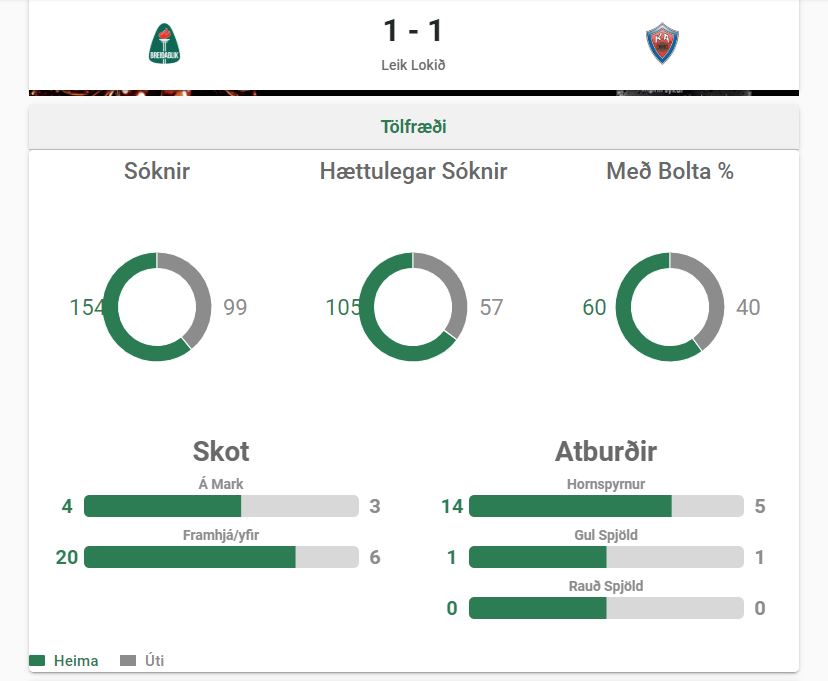 Því miður náði Blikaliðið ekki að fylgja eftir góðum leikjum gegn Stjörnunni og Val. Lykilmenn í okkar liði hafa oft spilað betur en í gær. KA menn náðu til dæmis að loka gersamlega á framherjaparið okkar og hefur sjaldan í sumar sést jafn lítið til þeirra í leik. Einnig vantaði betri ákvörðunartökur á síðasta vallarfjórðungnum hjá okkur og lítil ógn var úr þeim fjölmörgu hornspyrnum sem við fengum í leiknum. Við áttum hins vegar nokkur færi og hálf-færi í leiknum en þetta var einhvern veginn einn af þessum leikjum sem boltinn vildi bara ekki inn hjá andstæðingum okkar.