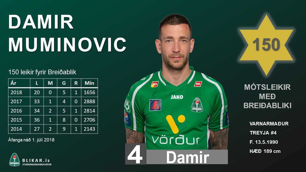 Damir er næst leikjahæsti leikmaður Breiðabliks með 412 leiki, og hefur skorað í þeim 19 mörk frá því að hann kom til félagsins árið 2014. Það þarf vart að fara nánar út í hversu mikið Damir hefur gefið okkur Blikum — það vita allir sem koma að klúbbnum.