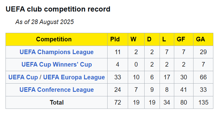 - Evrópudeild: 2025, 2023, 2020, 2019, 2016, 2013, 2010.
